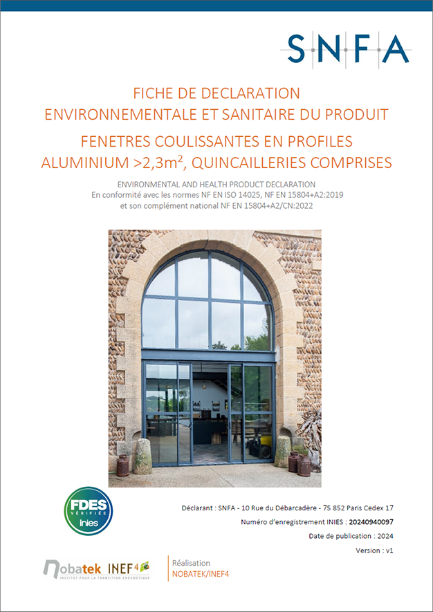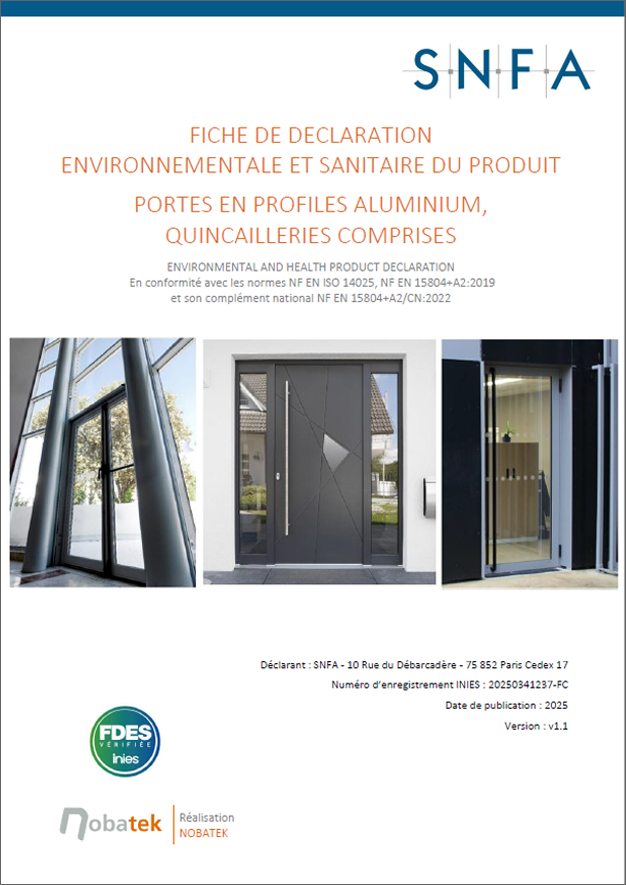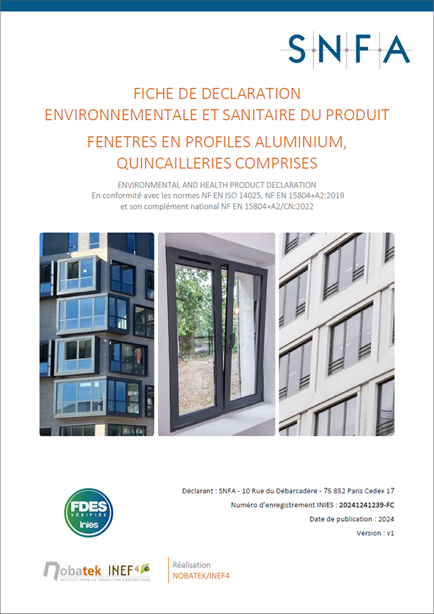 Le SNFA réalise, pour l’ensemble de ses adhérents, des Fiches de déclaration Environnementales et Sanitaires (FDES) collectives s’appliquant aux produits de construction en aluminium.